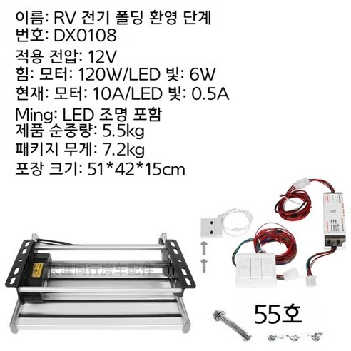 TYTXRV 캠핑카 트레일러용 접이식 발판 알루미늄 합금 승차중량 150kg 자동, 전동 싱글 스텝 DX0108