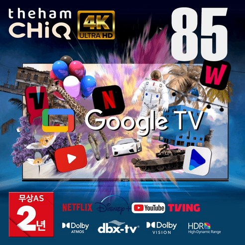 2023년형 신제품 더함 85인치(215cm) 4K UHD 크롬캐스트 구글 안드로이드 OS11 스마트TV UA851UHD, 벽걸이 기사설치, 상하