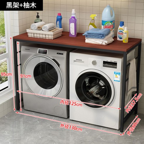 깔끔정리 드럼 더블 세탁기 선반 베란다 위 바닥 전자레인지 수납 오븐 건조기, 일층, 블랙+유자나무쌍통/e56