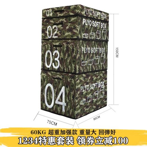 다용도, 홈트레이닝, 운동기구, 세트 스텝박스  크로스핏 점프박스 우드 트레이닝 서전트 점핑 스텝, 10_위장색 60KG 150cm 세트