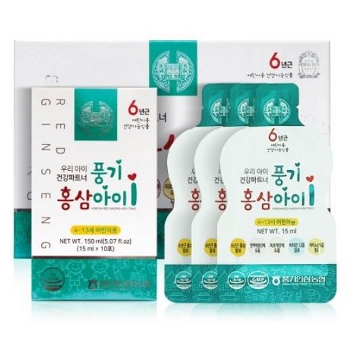 농협 [풍기인삼농협] 황풍정 풍기홍삼아이는 15mlx30포로 구성되어 있으며, 세부 정보는 각 온라인 쇼핑몰의 상세 페이지에서 확인할 수 있습니다. 한국 전통 약재를 사용하여 제조한 제품으로, 체력강화와 면역력 증강, 스트레스 완화 등 다양한 효능을 가진 제품입니다. 하루 1~2회, 1포를 섭취하는 것이 적당하며, 섭취 전에는 반드시 의사와 상담하여야 합니다. [4]