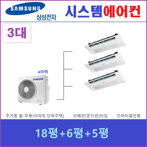 삼성 무풍 시스템에어컨 3대 / 가정용 천장형에어컨 / 설치비별도, [ 아파트, 단독주택 신규설치 및 리모델링 세대 ]
