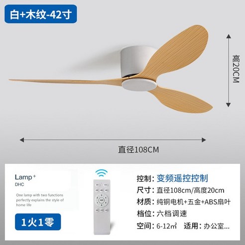북유럽 음소거 천장 선풍기 조명 식당 거실 가정용 미니멀리스트 원격 제어 램프 없는 천장 선풍기 상업, 5.No Light White Wood