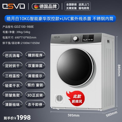 독일 OSVO 의류 건조기, 가정용 소형 드럼 형 4kg 속옷 소독 살균 고속
