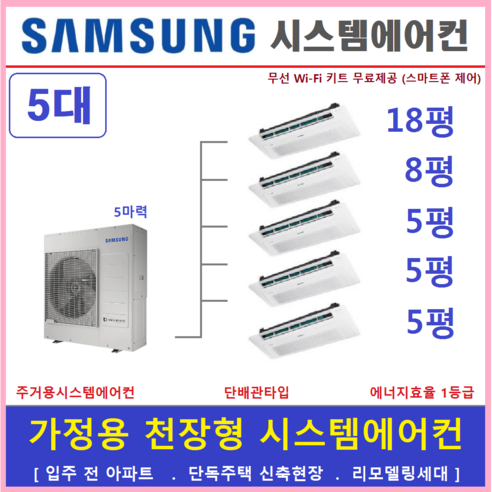 삼성 시스템에어컨 5대 무풍 천장형에어컨, [ 아파트, 단독주택 신규설치 및 리모델링 세대 ]