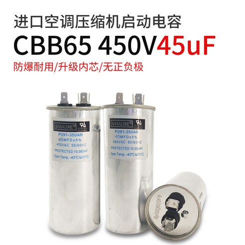 – 이동식에어컨 통용 CBB65수입 안전장치 에어컨실외기 압축기 작동 축전기 기계 25uf35UF50uf/450v, T06-수입 45UF축전기(품질)는 에어컨의 안전한 작동을 위한 필수 장치로, 에어컨 작동 시 안전을 보장하고 신뢰성 있는 전원을 공급합니다.