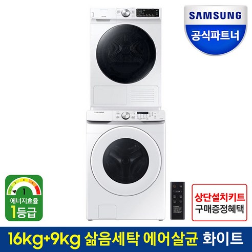 삼성 드럼건조기세트 WF16T6000KW+DV90T5540BW / 16kg+9kg / 화이트색상