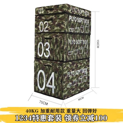 중요한 단어: 크로스핏 스텝박스  크로스핏 점프박스 우드 트레이닝 서전트 점핑 스텝, 9_위장색 40KG 150cm 세트