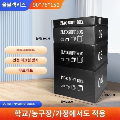 점핑 크로스핏 점프 박스 순발력 근력 스텝박스 폴리오박스 바운스 런지 하체 홈트, 클래식 강한 내압 올 블랙 키즈