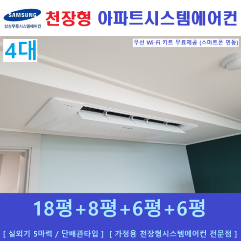 삼성 시스템에어컨 4대 / 가정용천장형에어컨 / 무풍 인버터절전형, [ 아파트, 단독주택 신규설치 및 리모델링 세대 ]