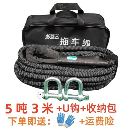 자동차 트레일러 로프 충격 방지 견인 로프 벨트 트럭 suv 오프로드, 5톤3미터+U후크+핸드백