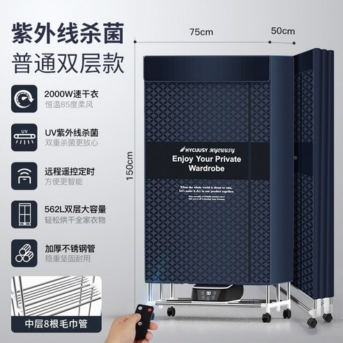 휴대용 의류건조기 HYCUUSY 220V-2000W 가정용 소형 공기 건조기 따뜻한 대용량 살균 옷장 의류, 01 Double layer 1.5M_04 UK
